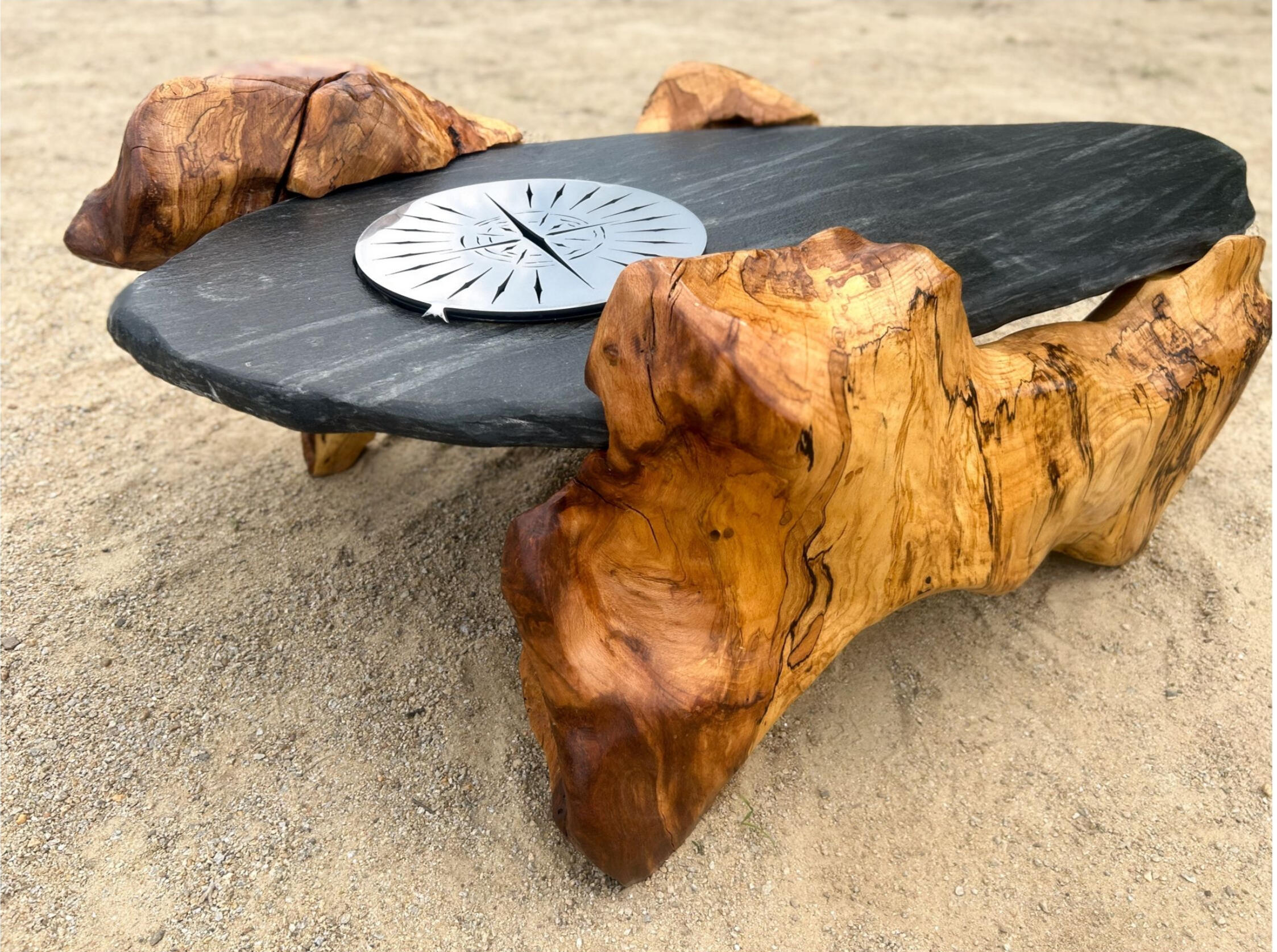 150 year-old Spalted Beech Wood, Bluestone, Mirror Polished Stainless Steel, Aluminum GrillAs a celebration of Vietnamese origins, mythologies, and the forever significance of cooking, the Dragon's Eye is to pay respects to Leviathans, Fairies and every Ancestor that has come before me. Fully functioning as a grill, The Dragon's Eye wakes up in gardens and provides summer and winter feast to living Ancestors ongoing.